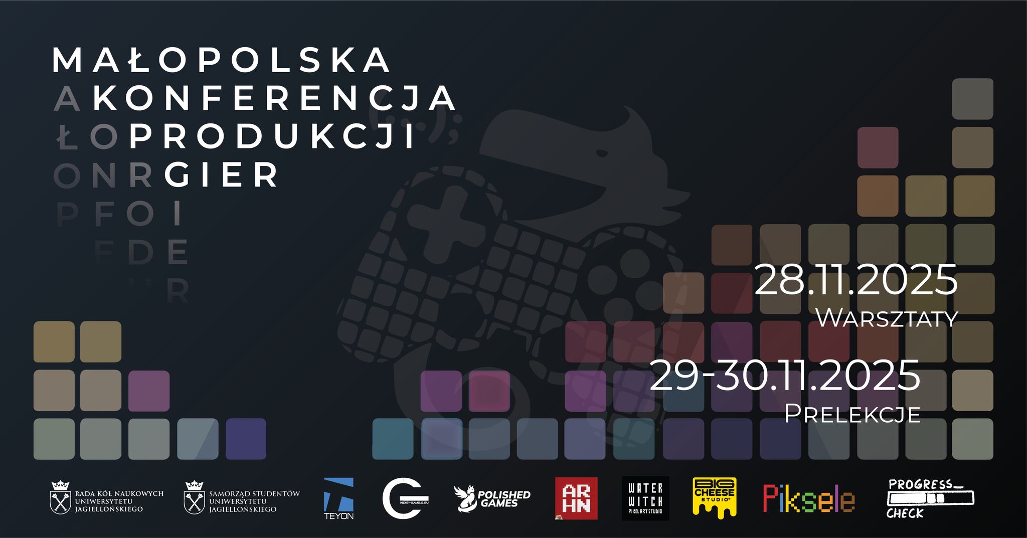 Wydział Fizyki, Astronomii i Informatyki Stosowanej Uniwersytetu Jagiellońskiego w Krakowie zaprasza wszystkie osoby zainteresowane grami oraz ich produkcją do udziału w Małopolskiej Konferencji Produkcji Gier.