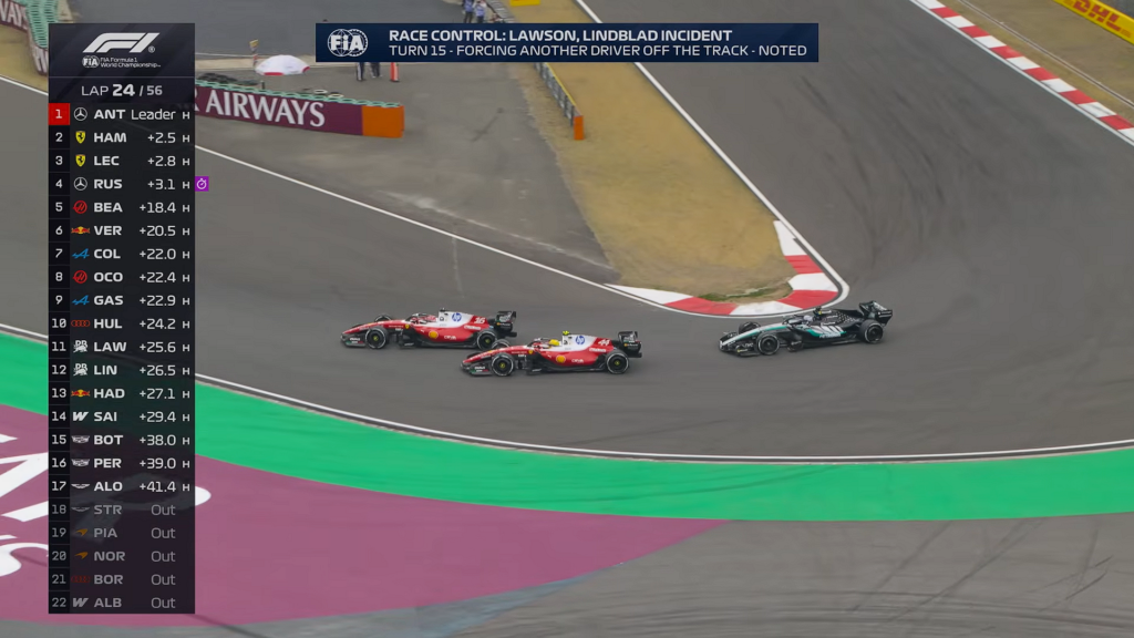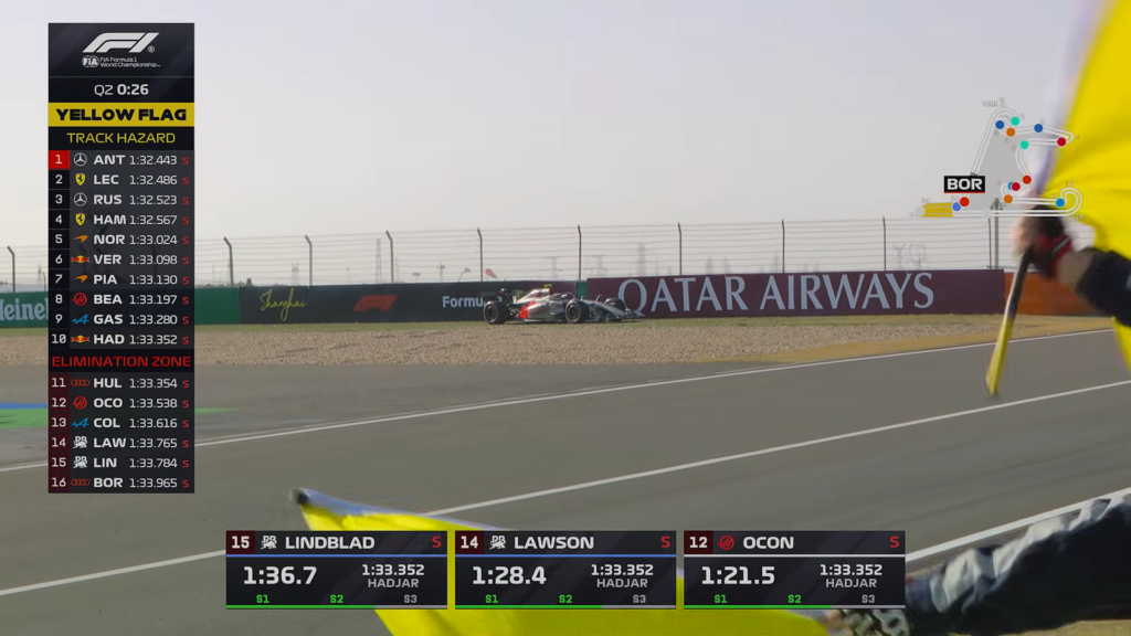 Oprócz niego odpadli Lindblad, Lawson, Ocon, Colapinto i Hulkenberg, ponownie na P11. W finałowej rozgrywce o najlepszy czas okrążenia doszło do niespodziewanego widoku. Bolid z nr. 63 stanął na torze. Niespodziewana awaria dosięgnęła George’a Russella, a realizator na kilka sekund skupił uwagę na, tym razem zaskoczonym, Toto Wolffie, szefie zespołu Mercedes.